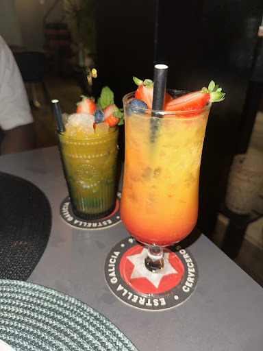 Nos pusieron unas copas de cava para recibirnos, y aparte cuando las terminamos, nos pusieron dos más de cortesía! Riquísimo. Pedimos un mojito de fresa natural, que era una delicia. Se notaba la fresa muchísimo. Era una gozada.