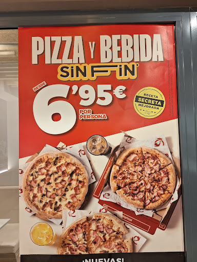 Read moreHace unos días pedimos una pizza + 2 entrantes a las 22:40 de la noche, nos dijeron que más o menos en 40min la pizza estaría en casa, debido a las altas demandas por ser Martes de oferta. Eran las 23:45 cuando volví a llamar porque mi pedido aún no había llegado y me dijeron que estaba en reparto que ya no tardaría mucho.... A las 0:00h abrí la puerta al repartidor (35 min más tarde) y cuando ya tenía la pizza en mis manos (tibia por cierto) y de estar a 5min de las 0:00h de la noche con un hambre increíble, llegada la hora de pagar el repartidor me dijo que no tenía datáfono (cuando recalqué que el pago sería mediante tarjeta en mi pedido) y la única solución que me pudo dar (pobre, a las 0:00h para nada le achaco la culpa a el)... Y la única solución que me dio era que me podía dejar el pedido ir a por el datáfono y volver cosa que no me pareció lógica. Estuve intentando contactar con la tienda para al menos recibir una disculpa.... pero naturalmente ya había cerrado...