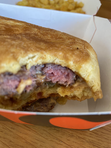 Read moreUN VICIO DE LUJO, carísimo. Me comí puro marketing 🤣 A estas alturas la gente no es tonta. Muy rojo todo, bolsita mona bien de grapas y pegatina original, buen papel antigrasa, cajita mona... Por redes muchos eventos con influencers, cosas muy random...Pero lo importante, que es lo que te vas a comer... En mi caso burger y patatas.. decepcionante. El pan fue lo que más me gustó, la técnica "Smash" no es sólo aplastar una bola de carne, quedó totalmente seca, sin sabor, ni jugosidad. La lechuga bien empapadita y floja (y eso que pedimos en local para take away para comer por la calle) el queso estaba bien fundido pero sin sabor, para mi gusto poca salsa y demasiado suave. La burger estaba fría y en general sosa. Las patatas no estaban tan mal, bien de sabor, pero blandas. A mi claramente no me dieron lo mío, sorry. Volveré y pediré otra burger diferente, me encantaría notar una mejora en la burger y dar otra oportunidad, ya que habéis aterrizado en Palma hace nada y quizás fui en mal día. Si veo que es lo mismo, no vuelvo más. Jode bastante saber que estás pagando solo marketing, aprovechad que tenéis una carta reducida para que salga una burger tremenda. Igualmente gracias, el sistema de pedido y el...