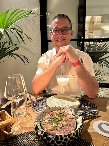 Better food than some Michelin star restaurants I've experienced. I actually whimpered a little when I took my first bites of the gazpacho with sashimi dish and the ceviche (fish of the day that day was bass). Very creative compilation of flavors but it works fantastically and the quality of every ingredient is impeccable. Bartenders and mixologist should be awarded, the cocktails are magic. I tried the smoked cherry I think was the name, fabulous balance, if you like mezcal. I've already told friends that live in Valencia they must hop over to try it - I will be back. I think the menu changes semi frequently or at least part of the ingredients. The wine pictured is great pairing with these dishes. Waiters were very kind, staff of the whole hotel are. Pass on the cheesecake, flavor combo didn't quite work...