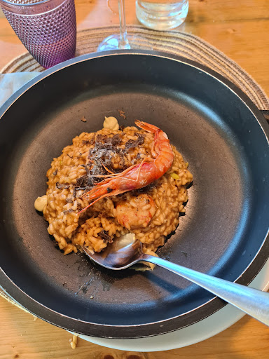 ¿ Por donde empezar? El ambiente es tranquilo y con una estética muy llamativa. hasta aquí vamos a las luces y las sombras. Es la primera vez en mucho tiempo que pido una paella y me quedo con hambre. Vengo de lugares de referencia con arooces exquisitos y que te sobra. Tengamos claro que es un restaurante enmedio de la carretera, una ración escasa a ese precio no lo veo. 2 de los comensales pidieron Rissotto, tampoco se llenaron y pese que estaba bueno 26€ de plato no lo compensa. El jamón iberico a 19€ era de super ( corte gemelo) y tenía poco sabor propio del jamón iberico. Pongo una foto de la la paella para 2 como reflejo de lo que queda por persona. Una lastima, porque la comida no era mala, pero para el precio escaso. Resumen: Le doy 5 estrellas al ambiente por la facilidad de aparcar y el salón acogedor. Le pongo 3 al servicio porque no pasó de correcto e incluso se equivocarón 2 veces. Le pongo un 2 a la comida por su ración escasa y precio desmedido no acorde con lo que comes. Sería interesante que se tuviera en cuenta lo redactado, pues corrigiendo estos aspectos estariamos hablando de otra crítica completamente diferente.