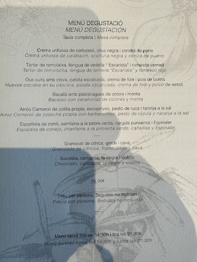 En resumen: un atraco a mano armada. Si no eres capaz de ofrecer un buen menú degustación, nadie te obliga a ofrecerlo. U ofrécelo a un precio muchísimo más bajo. Espero que los platos de carta sean más dignos de una...