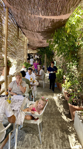 First stop after the long winding drive up the mountain and wonderful attentive and friendly smiles greeted us. The food was excellent, Migas were a feast and the polenta was light and delicious with a huge helping of various jamon and sausage. We got a “small” salad to share and it was a mound of delicious fruit and vegetables that was more than enough for 3. The friendly gato seemed to follow us all over town and it hangs out on the veranda overlooking the front of the town and the passing...