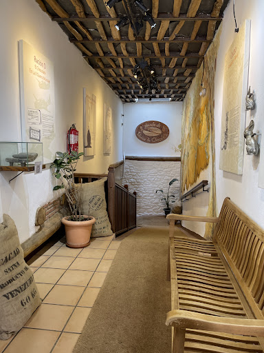 The kitchen is behind the counter, where they make the chocolate, and there is information about the chocolate in the entry hallway, although this is in Spanish.