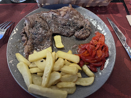 Read moreComimos el martes 9 de julio. Menú por 45 euros, un verdadero timo. Comida pésima y muy escasa, en el menú no pone el precio. El menú incluye 4 primeros para compartir cada uno entre 4 personas y un segundo a elegir, postre y una botella de vino para cada 4 personas. De la ensalada, cada persona tocamos a una rodaja de tomate, algún trozo de atún y tres hojas de lechuga. De la ventresca con tomate, tocamos a una rodaja de tomate cada uno con un poco de ventresca que creo que era atún. Los pimientos rellenos, 1 mini pimiento para cada persona. Y luego sacaron unos calamares fritos con pimientos del padrón que ya os podéis hacer una idea de lo que tocábamos por persona. De segundo, yo pedí entrecot, que pese a estar bueno de sabor, la carne era de muy mala calidad, muy dura y con mucha vena... La única persona que pidió salmón en papillote, tuvo que echar el plato para atrás y que le sacaran otra cosa, ya que NO era salmón en papillote si no cuatro trocitos de salmón ahumado con verduras fritas por encima (una vergüenza). Nos hemos sentido estafados desde el momento en que nos han dicho que una botella de vino era para cada 4, pero dada la dificultad en sanfermines para encontrar sitio para comer, nos ha tocado tragar. Os aseguro que mis pies no volverán a pisar ese local, que además de la escasez de comida y la poca calidad, no tenían el aire acondicionado y hacía un...