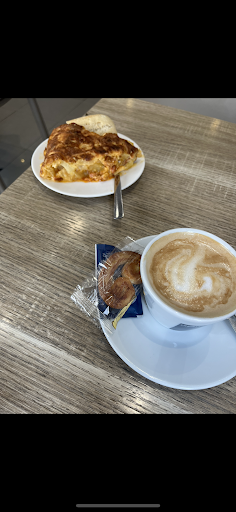 Los pinchos no probe ninguno, sin embargo tenían todos buena pinta y un aspecto bastante apetecible. El café que probé estaba decente, venía con una palmerita de hojaldre que siempre se agradece esos detalles. El lugar consta de terraza cubierta para cuando llueva, también consta de un muro medio de cristal y plástico que también se agradece al estar más guarecidos.