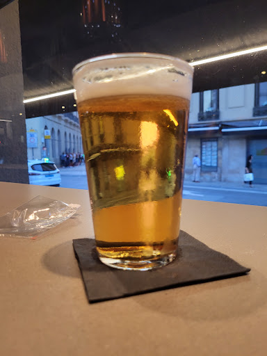 Read moreBuen sitio para tomar, hacer una cena de picoteo y pasar el rato por el centro de Pamplona. Está muy cerca del trazado del encierro de San Fermín hacia la plaza de toros. Pedimos unas raciones de rabas y patatas fritas con queso, pull pork y salsa barbacoa. Las rabas estaban jugosas y en su punto. Las patatas eran caseras y el pull pork estaba bueno. El queso me pareció elemental ligeramente derretido y la salsa bbq me dió la sensación de ser chovi o similar. No obstante estaba bien hecho. También pedimos croquetas de jamón y de hongos, queso brie frito y "huevo de un bocado". Las croquetas estaban muy buenas, potentes de sabor. El queso brie no tiene ninguna pega pero no es nada diferente de otros lugares. Lo que estuvo interesante fue el huevo"de un bocado", es una yema de huevo cocinado ligeramente y encerado en una masa crujiente tipo rollito primavera o wantun. La idea es introducirlo de un bocado y dejar que se rompa en la boca para que te inunde la yema líquida. Algo muy recomendable de probar en este sitio. La chica que nos atendió fue muy amable con nosotros y tuvimos una buena experiencia. Nuestra estancia más bebida nos salió por unos 17€ por...