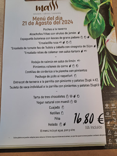 Read moreLocal luminoso, decorado blanco con pinta de estar reformado recientemente. Dispone de 2 zonas en L de mesas bajas y altas. Atención muy atenta, eficaz y sonriente (yo lo agradezco). Dispone de variedad de bocadillos, raciones, platos combinados,.... y tiene también menú. Curiosamente el menú es de 16,80€ aunque pone 18,60€ (error imprenta jeje) A elegir 6 primeros, 6 segundos, 6 postres. Buena variedad y buenas raciones. Buena presentación. Calidad precio muy bien. Pochas muy buenas con tocino, chorizo, guindillas preparadas, ... Ensalada de chaca muy agradable y muy buena. Lagarto de cerdo con salsa pimienta con patatas fritas de verdad muy bueno. Pez espada con patatas panadera, cebolla y pimiento muy bueno. Yogur con frutos rojos muy agradable y bueno. Por algunos postres acabados nos ofrecieron mouse de...