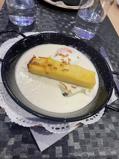 Read moreExperiencia decepcionante. Tienen mucho que mejorar. Acudimos a comer 8 personas. Nos pusieron una mesa que, como mucho, era para 6 personas. La mesa estaba ubicada en un pasillo del sótano. Pasillo que da acceso a un comedor improvisado en lo que antes debió de ser un almacén. Las escaleras para llegar al sótano son de semicaracol, incómodas y peligrosas. Las paredes rezumaban humedad. El baño del sótano no funcionaba. La comida regulín. Las croquetas y el arroz exquisitos. La merluza muy salada y el solomillo difícil de comer. El postre, único y lo que llaman tarta de queso es una crema de sabor indefinido. Al pagar la cuenta opté por hacerlo con tarjeta (un solo pago por el total de la factura) y se molestaron. Prefieren efectivo me dijeron. Problema de cobertura supongo porque tuve que salir del sótano para pagar. El servicio tiene que mejorar. Creo que a todos les falta...