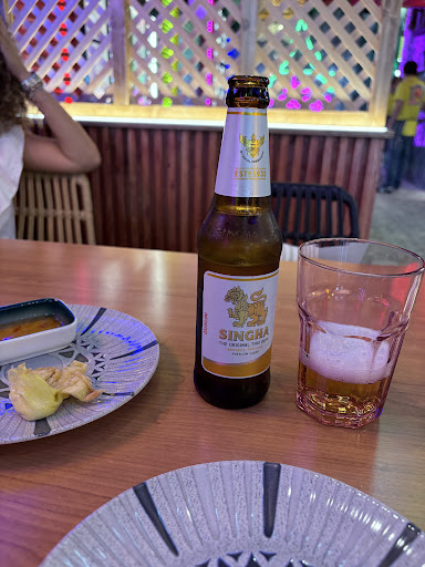Como es apertura te invitan a la primera ronda de bebidas y la cerveza Singha es algo de lo más ligero si te gustan las cervezas rubias.
