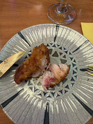 We ordered the fritura variada, do not order this, nothing on the plate was good. The chicken was served as shown in the first photo. When I pointed it out, the waiter looked annoyed, didn’t even apologise and just handed it off to a coworker, who simply swapped it with another piece (second photo). Let’s just say the piece they handed was just as bad.
