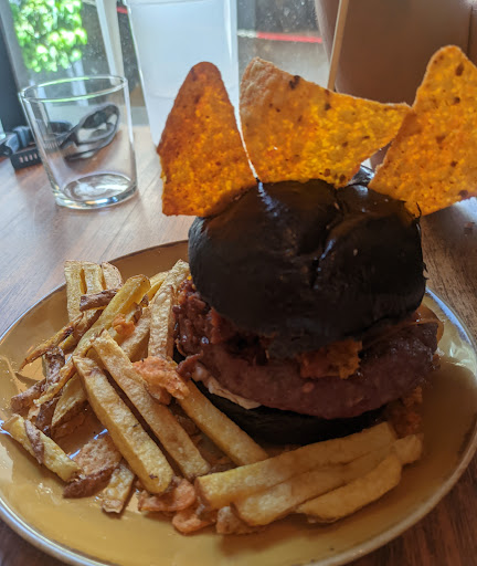 Llegamos a la hora, 20.45 y cenamos 6 personas. Al comienzo nos atiende un camarero muy majo que luego ya desaparece del bar. Cogimos 2 de nachos y hamburguesas. Tardaron en sacar los nachos 45 - 50 minutos. La espera se hace más larga cuando ves que hay prioridad al delivery, ya que estábamos en la mesa de la entrada. La decepción viene cuando los nachos llegan fríos estando la cocina está a 4 escalones literal de distancia.