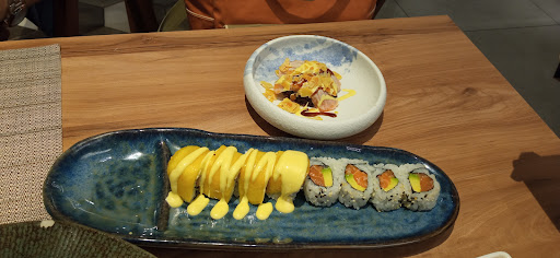 Hay que evitar pedir cosas que pueden no gustar porque hay que comerse todo el plato, o cobran un extra de 3 € por dejar sobras sin comer en los platos. Son raciones pequeñas, así evitas saturarte y pruebas de todo. Sushi, maki, carpaccios, tatakis o uramakis, ramen, wok. Bonita presentación. Platos especiales que no hay en otros restaurantes, como un mix de cigala que contiene sashimi mixto con cigala en una salsa de burrata además de la ostra ikura con trufa tobiko. Recomiendo smoke tuna o smoke salmón, presentado de manera única, con una campana de humo.