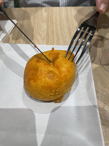 Está junto a la Universidad Pública de Navarra y tiene por tanto ambiente universitario, con mucha gente joven. El interior tiene una zona de butacas, muy agradable, junto a grandes ventanales por lo que es muy luminoso. El resto de las sillas y mesas es más funcional. Hacen unos fritos estupendos, y de buen tamaño. El de pimiento me entusiasma. Tiene terraza descubierta, los baños está limpios y siempre que vamos aparcamos en las inmediaciones sin problemas. En definitiva un establecimiento muy recomendable. Sin embargo las últimas veces que hemos estado tuvimos la sensación de que habían bajado la calidad de los fritos. Igual tuvimos mala suerte, pero nos pasó varias veces. Por eso bajo la calificación que di...