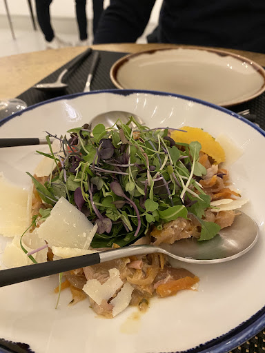 Read moreWaren mit der Familie am 1. Weihnachtsfeiertag dort, um das vorgegebene Menu zu probieren. Die Produkte mit Sicherheit von guter Qualität, allerdings seelenlos "in Szene gesetzt". Bei quasi jedem Gang fehlte es an Salz und Würze. Die Gänge wurden zu schnell serviert; es waren nicht alle am Tisch mit einem Gang fertig, schon wurden den anderen der nächste Gang serviert. Alle Gerichte lauwarm bis kalt. Der Großvater, welcher ansonst hellauf begeistert ist, (fast) egal was er isst, war total enttäuscht, dass keines der Produkte in keinster weise nach dem eigentlichen Produkt geschmeckt hat ("Der Fisch schmeckt nicht nach Fisch. Das Fleisch nicht nach Fleisch."). Schade um die guten Ausgangsprodukte! Der Gastraum wirkt steril und rein auf Pragmatismus ausgelegt, alle Tische im selben Abstand hintereinander angeordnet, auf der anderen Seite dasselbe. Fühlte mich wie in einer Kaserne. Ebenfalls seelenlos (und das in einer ehemaligen Kapelle)! Der Service war super charmant, nett und bemüht, volle Punktzahl. Am Ende des Menus haben wir dem Kellner Feedback gegeben, welcher unsere Kritik an den Chefkoch weitergeben hat. Anstatt den Preis von 80€ (!) pro Person etwas herunterzusetzen, wurde uns vom Kellner stellvertretend für den Chef eine Flasche Cava angeboten... Das kann man so oder so sehen, aber ich persönlich habe mich damit abgespeist und in der Kritik nicht ernst genommen gefühlt, da es nichts mit unserer schlechten Erfahrung des Essens zutun hat. Was möchte ich mit einer Flasche Cava, wenn das Essen eine Enttäuschung war? In Pamplona, wie im Rest von Navarra und auch im angrenzenden Baskenland, kriegt man Produkte solcher Qualität, besser zubereitet, in vielen Restaurants (oftmals als Hausmannskost; unscheinbaren Gasthäusern) für die Hälfte oder ein Drittel...