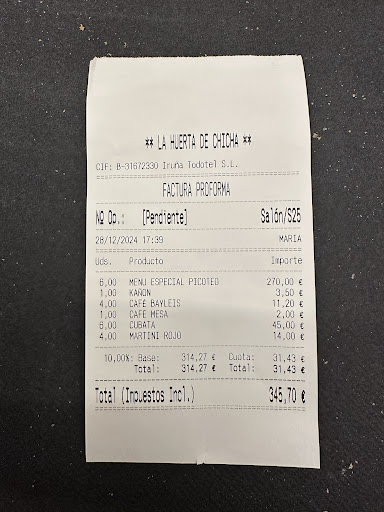 Read moreAyer estuvimos comiendo en este restaurante nueve personas. Al hacer la reserva, se nos informó que habría dos opciones de menú. Elegimos uno, pero al llegar nos encontramos con que solo ofrecían un menú, que no era el que habíamos seleccionado y que además resultaba más caro. En ningún momento se nos comunicó este cambio con antelación, algo que habría sido lo mínimo. Aunque esto nos incomodó, decidimos no reclamar y continuar con la comida.