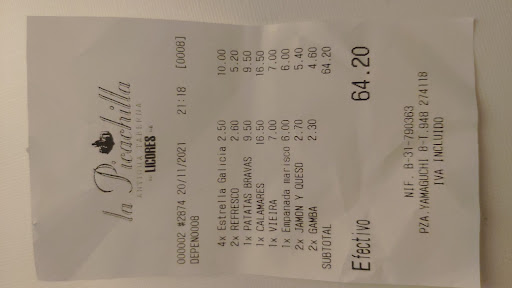 Un lloc justet, molta decoració o ganes de semblar el que no és, val la pena caminar fins al centre, on hi tindràs millor qualitat i millor elaboració i molt millor preu. Ens ha cobrat per ració de calamars arrebossats 16'50€ i per 4 gambes petites arrebossades 4'60€. I les braves a 9'50€ un desastre, les serveixen amb un ketchup i maionesa de pot de super i una salsa que vol aspirar a dures penes a ser brava, però sense gust ni textura ni brava. Una estafa en tota regla, no us el recomano pas. Nosaltres segur que no repetim, per aquest preu hem fet 22 "pinchos" boníssims al bar la estafeta o al bodegó sarria, o a qualsevol bar del centre. Els 12 minuts de diferència caminant no justifiquen aquests preus. En definitiva el Picachilla no costa el que et demanen, hi ha molts bars a Iruña amb una relació qualitat preu i sabor molt millor. Una presa de pèl de manual. Agafen un concepte que no dominen, li doblen el preu i l'executen amb justor. Impresentable!. Però una mitjana a 2'50€ sí la podeu...