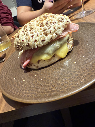 Read morePor segunda vez nos acercamos para degustar la carta de picoteo. La primera una ensalada templada de la casa (la del menú) con sus buenas porciones de lacón y vinagreta que estaba muy buena, un plato de cecina y bocatas (Pulled pork y pulpo en pan negro) y opción de buen pan sin gluten , ambos bocatas estaban muy ricos, destacando el pulled pork. Salimos muy satisfechos de esta primera visita. La segunda nos acercamos a degustar el bocata que se presentaba al concurso de bocadillos (denominado el patudo de Iruña), combinación de sabores, rico y muy jugoso, antes abrimos apetito con una tabla de quesos (oveja y cabra) que fue un visto y no visto. Repetimos el pulled pork, a los txikis les encantó, le pusieron un 10. Destacar también la carta de vinos, para esta segunda vez, un buen rosado Guerinda. Volveremos a por el menú y a ir tachando la lista de bocatas. P:D: Recomiendo para el vermú,...
