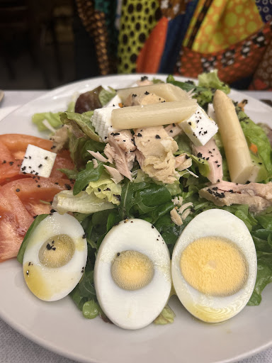 We ate at Mesón Pieineo this evening at the suggestion of our Airbnb host. We were seated at a nice table and decided on the house menu which included appetizer main course and dessert. Appetizers consisted of an enormous mixed salad with tuna and tomatoes for my wife and I got a lovely chunky tomato salad with tuna and olive oil which was spectacular.