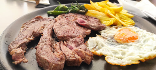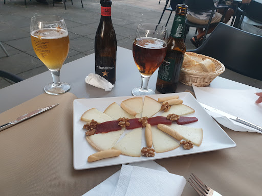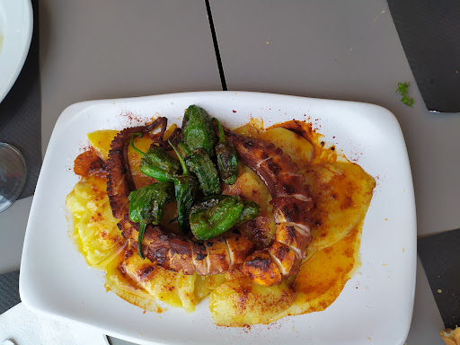 Está alejado del centro, en una plazoleta de un barrio residencial, pero mereció mucho la pena desplazarnos hacia allí, movidos por la idea de comer paella. Como no reservamos y tardaría demasiado, pedimos de la carta, muy variada: ensalada mixta, alitas de pollo y pulpo con patatas y pimientos de Padrón. Cuál fue la sorpresa al aparecer dos generosas patas de pulpo a la brasa sobre un lecho de patatas, al estilo del pulpo a feria, salpicado de bastantes pimientitos por encima. Vaya ración! Muy muy rico todo. Y la camarera súper amable al acercarme al coche a punto de irnos unas cosas que se me habían caído....