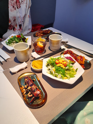 Read moreThis place is so eclectic! Loved it 😍 They have a rack of wrap around kimonos you can wear while dining!!!!! The menu is the most varied I have ever seen. From Japanese thru Spanish to Thai and US; incredible. We had a Miso soup, chicken Bao and a crunchy cheese & ham with bbq sauce topped toast. Green tea and a large bottle of water was €23. On top of that, this place is fully wheelchair accessible with a disabled elevator and a...