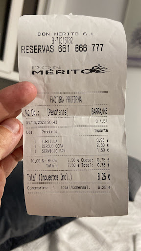 Buscabamos donde comer cerca de la plaza de toros de Pamplona y aparcamos justo en la puerta de Don Mérito Esencia así que decidimos probar suerte, y creo que acertamos, nos dio una buena impresión desde el principio. Tiene un bar a la entrada, el ambiente es tranquilo con decoración minimalista en tonos neutros, grises y tostados, con música suave y agradable. Tiene una cava de vinos al fondo bastante que llama bastante la atención. El servicio y atención tanto del jefe de sala como de los camareros está muy bien, con disposición para atendernos y complacernos en todo momento, tuvimos un par de detalles que resolvieron inmediatamente y es que mi marido tenía algún problema con la silla que al notarlo la camarera se acercó rápidamente para preguntar si había algún problema con la silla y si quería cambiarla. Después llegó un grupo de personas a la mesa de al lado que metía mucho ruido y pedimos que nos cambiaran de mesa a lo que accedieron de inmediato ubicándose un poco más alejados para estar mas cómodos. Creo que es un equipo profesional y eso se agradece. El tipo de cocina es una fusión de platos gallegos y navarros con producto de calidad y bien tratado, nosotros probamos las anchoas de Santoña, las zamburiñas a la plancha, y un rodaballo para dos que nos presentaron antes de cocinar. El postre fue un flan de huevo y café irlandés. Todo estaba muy bueno, especialmente el rodaballo que estaba en su punto y las cantidades para mi gusto generosas, el precio creo que corresponde al tipo de restaurante, comida y servicio recibidos. Algo a destacar y que a mí me gusta mucho es que el camarero llevó el gueridon y nos preparó y sirvió los platos ahí mismo. Otra cosa que también recomiendo es el café irlades que estaba muy bien preparado y por lo tanto muy rico. Y el pan nos encantó, sólo hubo un tipo pero estaba muy bueno, teníaun leve sabor a brasa aunque nos dijeron que se hacíaen horno. Cosas a mejorar, que a los granos de café del irlandés les vendría bien estar macerados para hacer perdurar por más tiempo el sabor y otra cosa que no tiene nada que ver con la comida pero que influye en el nivel del restaurante es que los manteles no están bien planchados y no tiene página web. Nos quedamos con ganas de probar la carne, así que es probable...