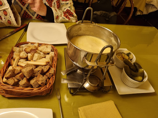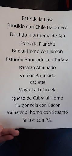 Read moreLa comida, muy rica, pero lo que la hace diferente es la atención del dueño y el resto del servicio, encantadores todos. El local no es muy grande, lo que contribuye a darle un aire más familiar. Por ponerle algún "pero", puede resultar un poco ruidoso, pero es que los clientes estamos como en casa, no en un "lugar de culto". La carta es muy reducida, allí se va a tomar una fondue o una raclette y algún entrante en forma de tablas de quesos, ahumados o patés y para acabar un postre es imprescindible, todo eso lo puedes acompañar con un buen vino (a precio asequible) o una cervecita (hablo de la zona de restaurante, en la barra y aledaños puedes tomar unas ricas tostas para acompañar la bebida). Los precios sin ser baratos tampoco son disparatados. Lo recomiendo para una velada que dejará un gran recuerdo. Resultó el colofón perfecto para una semana intensa...