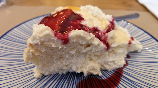 Pero lo mejor, sin duda, fue el postre. La tarta de queso hecha en el horno estaba muy sabrosa y era muy ligera.
