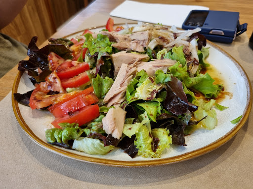 Read moreHa sido un buen descubrimiento este restaurante con una relación calidad de producto / precio inmejorable. Comimos un menú de fin de semana por 18,50€ más algún incremento que llevan algunos platos. Buena cantidad y calidad y buena presentación de los platos. Para mí gusto no se puede pedir más. El comedor cuenta con aire acondicionado, lo cual agradecimos puesto que fuimos un día de calor infernal en la calle y dentro se estaba bien, tampoco frío. Lo único que considero mejorable es que si el comedor está lleno, se genera un volumen muy alto de las conversaciones y resulta un poco molesto. Seguro que se podría poner algún sistema de absorción de sonido en paredes y techo para mejorarlo y quizás también mamparas...