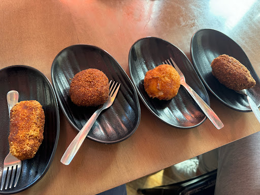 Bad: tables are dirty like they have been cleaned the day before the last time and no intention of staff to clean it, ordered croquetas taste like cheap industrial food from the gas station around the corner, croquetas were still frozen and hard inside, on the main door they have several stickers stating they are so gluten free etc. but in reality they have 0 without gluten, stuff rolls eyes after asking what the available pale white bocadillos are with, strong smell of weed, last but not least the visitors doesn't represent very high social standard so you don't feel well if not wearing black, drinking excessive or taking drugs.