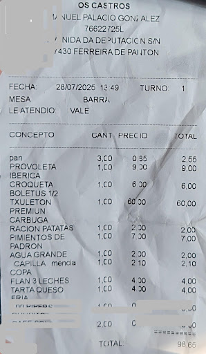 Read moreSi buscas una experiencia gastronómica auténtica y de calidad en la Ribeira Sacra, el Mesón Os Castros en Pantón es una parada obligatoria. Te reciben con una calidez y amabilidad que te hace sentir extraordinariamente bien atendido.