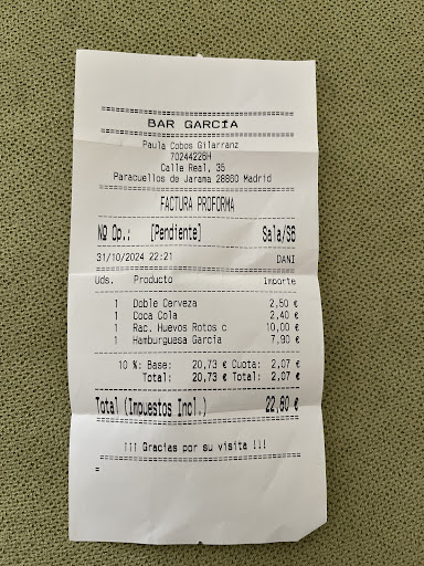 Read moreUna cena de 10. Llamamos con menos de una hora de antelación y nos dijeron que no había ningún problema en hacer los huevos rotos y las patatas en una sartén nueva a parte para que no tuviese nada de gluten. Los precios son súper razonables y la atención fue inmejorable Tanto por parte de la señora que estaba en la barra, como del camarero que nos atendió, Daniel. Solo hubo dos cosas que no nos terminaron de encajar: el ambiente tanto dentro como la terraza era bastante ruidoso y nos cobraron el 10 % de IVA al final, no estaban incluidos en la carta. Por todo lo demás, fue un sitio espectacular para cenar la noche...