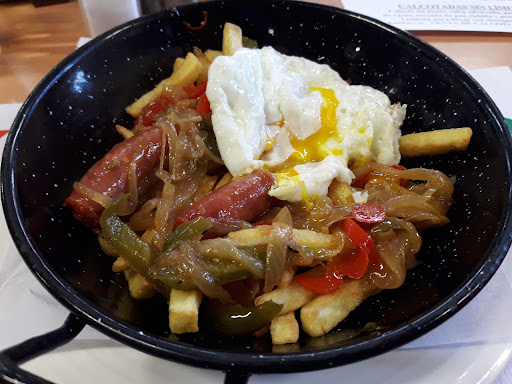 En general el sitio está bien. No esperéis un sitio chic pero tiene bastante espacio para aparcar, terraza y carpa exterior. La gente que trabaja es amable y son rápidos durante el servicio. La comida no está mal. Los bocadillos son generosos y el precio razonable. Si te sientas a desayunar un plato, también lo hacen bien. Casi siempre que voy a comer de menú pido brasa de segundo y la verdad es que lo hacen bien. Si es temporada de calçots y hay gebte comiéndolos, me he dado cuenta que el servicio va un poco más lento y en mi caso, la butifarra estaba un poco más pasada por la brasa de lo que debería. Imagino que el hecho de tener la parrilla de calçots fuera y la barbacoa dentro obliga al cocinero a estar pendiente de los dos sitios y se le puede pasar el punto. En mi última visita pedí patatas de la abuela con huevo y lo que no esperaba es que la abuela se llamase McCain. El nido de patatas que me trajeron era de patatas fritas congeladas. Si usasen patatas que no fuesen de bolsa,...