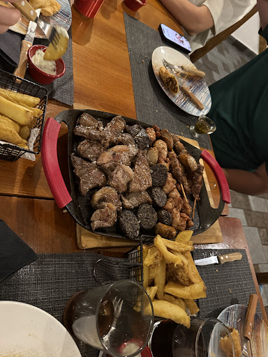 Sin embargo, el plato fuerte, la parrillada argentina, nos decepcionó. La mayoría de los cortes eran de cerdo, como panceta o secreto, aunque no nos quedó del todo claro porque nadie nos explicó qué nos estaban sirviendo. Pedimos diferentes puntos de cocción y no se respetaron del todo: la carne "al punto" vino bastante pasada.