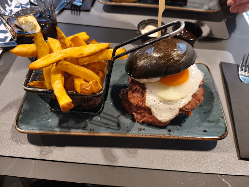Pasando a la comida, pues... deficiente. Es el clásico sitio que ves en twitter en memes de locales de smash burgers por 15 euros y el alma de tu primer recién nacido por cabeza. Las snobs burguers, pese a que la carne estaba bien, al César lo que es del César, son demasiado pringosas. La carne no entra en el pan ni de coña, y entre la salsa trufada y el huevo eso escurre más que un tobogán de aceite y se hace guarro e incómodo comerla, incluso partiéndola por la mitad. La salsa, eso sí, mu´rica ella. La claudio es un pollo frito rebozado, pero puede que ayer encontrásemos que no quedaban pollos en la faz de la Tierra porque ese pollo estaba seco como Sáhara en verano y más recalentado que los tuppers de cocido a mitad de semana. Muy deficiente y si son todas iguales, 0 recomendable. Los panes, pese a lo exótico del pan negro, pues tiene menos sabor que la lechuga a palo seco, y el de la claudio pues hace acto de presencia, que algo ya es.