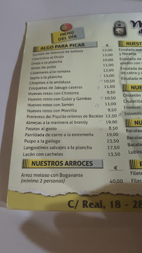 Read moreNo era la primera vez que acudía a este restaurante a comer por eso me ha sorprendido de manera muy desagradable lo vivido en el día de ayer. Menú especial por el día de la madre compuesto de 4 primeros - arroz con bogavante/Gambones a la plancha/ Salmorejo/Ensalada de salmón y pasas - y cuatro segundos - Entrecot/Chuletitas de cordero/Carrillada/Lubina o Dorada - a 30 euros por persona. Éramos 5 personas que escogimos dos arroz con bogavante - se supone por el pequeño trozo de cabeza que acompañaba cada plato de arroz- y ensalada de salmón con pasas en la que no había pasas y se llamaba de salmón por los dos pequeños trozos que había en cada una de las tres que se eligieron. Respecto de los segundos, se escogieron tres entrecots que más bien eran filetes de ternera de los finos que eran. Las chuletitas correctas y la carrillada estaba rica, todo hay que decirlo. Las sensaciones hubieran sido distintas si este menú, contando el día que era, hubiera tenido un coste de 20€...pero 30€...Salimos con la sensación de haber sido engañados. Pero bueno, que con no volver....vale. Una vez y no más. El Mesón de Mary pasó a la historia al menos...