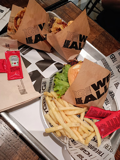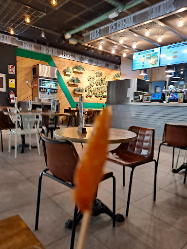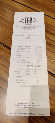 Read moreSala comedor: todo bastante desordenado, mesas sin limpiar, sillas muy incómodas...sé que se lleva el aire industrial y demás y que todos los TGB son así pero, por favor, fuera esas sillas de metal que están cojas y se mueven, además la ropa se puede rasgar fácilmente si no tienes cuidado y te quedas enganchado Baños: sucio y el dispensador de jabón de los baños de mujer/adaptado minusválidos está averiado, casi no sale jabón y está durísimo, no había papel higiénico, no había papel de secado de manos, el secador no funcionaba, no había tampoco gel hidroalcohólico Hamburguesas: pides 6 hamburguesas y te las meten todas en una sola bandeja, todas aplastadas, el tomate colgando, por fuera a punto de caerse al suelo, salsa por todos lados. Pedimos 2 pulled pork y aquello era solo sabor a la salsa bbq que llevan las hamburguesas, casi nada de carne, ni saboreabas las cebollas fritas ni el pan, nada de nada, solo salsa. Servicio: el personal parece amable, te atienden con rapidez y la velocidad en darte el pedido listo la verdad que bastante aceptable. Pero claro...si te van a dar hamburguesas así y todas metidas como estaban...pues...