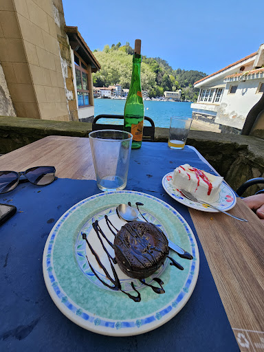 Read moreTiene unas bonitas vistas en la terraza y estuvimos a gusto en ella. Pero, sinceramente, el menú de 25€ dejó mucho que desear. Por ese precio nos esperábamos unas raciones de mayor calidad y elaboración. El arroz con marisco bastante justito y con un sabor a curry potente, los mejillones pasados de cocción y con una salsa anunciada como picante pero que apenas tenía sabor. Los segundos, nos decantamos por pescado y, aunque estaba rico, raciones pequeñas y mejorables. Los postres aceptables. Lo que más me sorprendió es que en el menú incluía la bebida (vino, sidra, agua etc) pero aparentemente una caña no, la cual tuve que pagar aparte. Es irónico que te saquen de forma incluida en el precio una botella de vino pero no una simple caña y te la hagan pagar aparte. Personalmente, si volvemos a Pasaia Donibane no creo...
