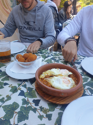 Read moreEstuvimos en la terraza un grupo de 5 , y lo cierto es que se estaba excelente, y la atención fue muy buena. El problema viene en la comida. La verdad es que ni repetiría ni lo aconsejaría. Al final la ruta de 10 km que justo acaba en ese restaurante, decidimos comer de raciones ya que teníamos muchísima hambre, y entendía que iban a ser raciones contundentes. Había un menú de 21 euros sin bebidas incluidas, por lo que pensamos que nos saldría a cuenta pedir raciones por la cantidad. Para nuestra sorpresa fue, que eran exactamente los mismos platos. Tal vez las migas trajeran en la racion un pelin mas, con dos huevos en vez de uno. El resto, a mis ojos, prácticamente igual nuestras raciones a los platos de mesas cercanas (solo hice un par de fotos). Impresionante. Total, que comimos bastante menos que si hubiéramos ido de menú, y pagando un exceso de 10 euros cada uno. Me pareció carisimo. Otra cosa negativa es, el punto de la carne, fatal, la pedimos al punto, y nos la trajeron pasadisima. Y el cordero del tayin, muy pasado también y el cus cus aguadisimo.