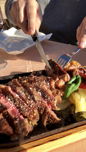 Cozy place hidden on the top of the hill, in order to get there you need to leave your car, then take a bus that takes you to the top of the hill, then hike on the inclined, stony road and then you get there (consider 15-20 on the process plus the waiting time on the bus). There’s no host, no walk ins (must have a reservation as the places is small), just a couple of waiters for the entire restaurant so the service is really bad. Small tables and little space between them, uncomfortable seating. On the pricey side considering the cost, the portion and the flavor, the appetizers are better than the main course, the tomato salad is good at 24€, the meat is not seasoned and they bring the grill for you to cook it, that makes the restaurant really Smokey as there’s no ventilation at all (a couple of tables walked out due to this). They only have 3 types of wine by the glass, one restroom per gender and a terrace with a good view that is opened if the weather permits. Pet friendly. The torrija is good. They only open a couple of hours for...