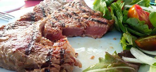 Si a los chiringuitos playeros se va por arroz y pescado, aquí se viene por carne y carne. Más concretamente carne de vaca. Tienen la decencia de no llamarla “buey” ni “vaca vieja”. Aunque lo habitual por la zona es el cerdo, aquí no hay. Solo jamón y de acompañamiento. Pocos cortes: chuletón, entrecot y solomillo. Y lo que es la característica de este sitio, lo que llaman vaca especial, que no es sino carne madurada.