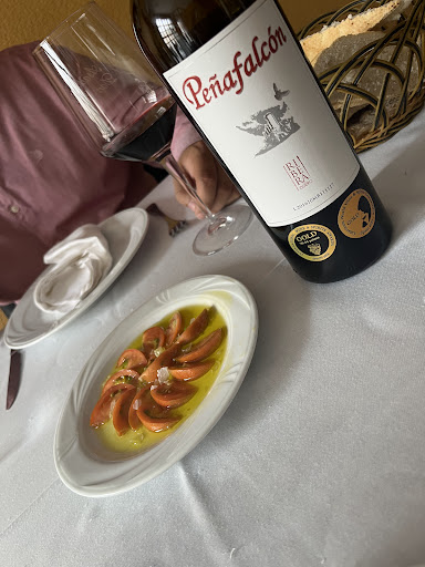 Read moreEs un Restaurante chiquitito y familiar. Como entrantes, preparándanos para lo que venía después, solo pedimos lomos de sardinas ahumadas con tomate natural y la ensalada especial, ambos muy bien. Previamente habíamos encargado lechazo para 4 que estaba jugoso, tierno, se deshacía en la boca y de piel crujiente, al punto de sal, no creo que lo haya mejor. Y es una ración grande, nos sobraba pero como no podíamos más el dueño, un señor muy cordial y todo un encanto, invitó a uno de nuestros acompañantes a 1 copa de vino de la casa para animarle (el vino no nos gustó tanto como el que habíamos pedido para comer pero fue todo un detalle).