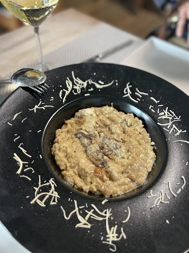 A very small and casual restaurant, but their dishes are amazing! We ordered 2 starters and 1 main course to share and was so happily stuffed by the end. First dish was the Truffle Foie Mushroom Risotto and it really set the bar high for the other dishes. Then came the grilled octopus (seasonal price) with aioli that was also great, although the potatoes were a tad too salty. Finally when the grilled lamb skewers came, we could see the patrons from other tables staring because it looked so good! We spent about €80 in total, which included 2 cups of coffee and 3 glasses of wine. Highly recommended to give this...