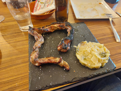 Fuimos un grupo numeroso a comer a la carta y lo que era disfrutar de un buen dia se convirtió en un mal sabor de boca. La preparación de sus platos no se puede decir que estuviera mal pero si ofreces especialidad en barbacoa no quemes la carne y cuando fuimos a pagar nos sentimos engañados, nos cobraron por dos personas más al pagar independientes, ya que decia que no se había pagado, espero que cuando se hiciera la caja sobrara ese dinero y sino que le sirva bien para su jubilación.