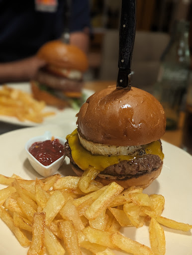 Read moreINCREÍBLE. Pedimos dos hamburguesas, una de ternera con queso de cabra y pimiento caramelizado y otra de angus. La carne sabrosísima, el pan muy bueno y el tamaño... complicada de comer sin cuchillo y tenedor! Mi novio destaca que su hamburguesa llevaba una especie de mermelada de pimiento que estaba espectacular! El local es una casa antigua restaurada, que mantiene la esencia tradicional y crea un ambiente relajado y acogedor. Tanto las camareras como los dueños preocupándose de todos los detalles, con amabilidad y simpatía. Me lo habían recomendado varias personas y, sin duda, repetiremos! Calidad-precio inmejorable, un gran descubrimiento!! PD: estaba llenísima, pero quería probar la tarta de queso, asique me la pedí para llevar y...