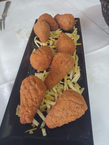 Read moreComimos croquetas (de gambas y de rabo de toro), realmente buenas. Luego también un asado de cabrito (medio cabrito), que no me gustó por la forma de hacerse (me sabía más a vino o a especias que a asado, pero eso irá por gustos) y una ensalada (lechuga, tomate y cebolla, la básica). Me quedé con ganas de probar la sopa castellana que tenía buena pinta.