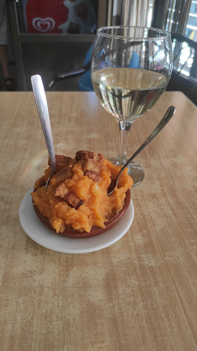 Se merecen una reseñaza. Para empezar de los 80 bares que hay en el pueblo es el Unico que nos dio de cenar los demás o estaban cerrados o les decías de cenar algo y parecía que les ablaras en otro idioma. Los dueños majísimos...la mujer es encantadora. La comida muy buena ,nos pusieron una tapa de patatas alioli ke están ke te vuela la cabeza de buenas.pedimos pinchitos,croquetas y dos bocadillos uno de calamares (que estaban blanditos bien fritos sin el hilo ese gelatinoso) y otro de tortilla (estaba espectacular de buena)y los dos bocadillos que eran de media barra cada uno encima de pan de pueblo que ya es para morirte. Sin duda el mejor bar del pueblo para mí si vuelvo por aquí repetiré seguro. La atención a sido buenísima,ellos muy atentos y...