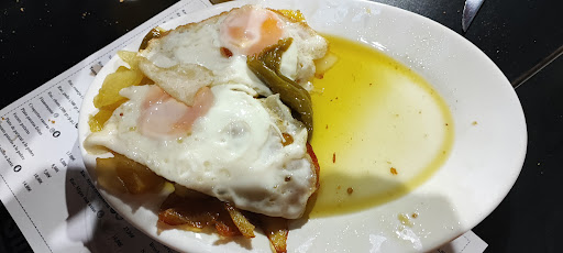 Raciones muy caras para la cantidad que dispensan, esto no es el Bagá. Comenzamos tomando una pipirrana doble de la casa, puesto que éramos cuatro adultos.Un cuenco de madera con poco fondo, total una ración para dos. Seguidamente una ración del típico chorizo y morcilla a la brasa 10.80€. Charlábamos animosamente hasta que apareció en la mesa. Nuestras bocas enmudecieron para mirarnos unos a otr@s. Dos trocitos de morcilla y otros dos de chorizo que era más bien chistorrilla. El plato parecía un hospital robado.Un disparate. A continuación preguntamos por el pincho de pollo muy recomendado por el camarero. Como costaba 10€ preguntamos por el tamaño. Por más que se esforzaba el hombre con la longitud no llegaba a superar el tamaño de un pincho normal. Con lo que decidimos brocheta de pollo que aunque tenía la misma cantidad de pollo llevaba verduras. Casi 12€. Por último, la esperada fuente de papas a lo pobre con huevos (recomendada por el camarero con cuatro huevos).10€ . De fuente tenía poco mas bien era un plato grande con una fina cama de papas, un pimiento y cuatro huevos encima para que no se escaparan las escasas patatas. En la cuenta la "fuente" cambió de nombre de 10€ a 15€ por los huevos...que digo yo que serían de la gallina que los pone de oro. Conclusión. La comida estaba efectivamente buena. Pero cara y escasa. No recomiendo a nadie gastar gasoil o gasolina para ir a este lugar puesto que no merece la pena. De seguir así colgaría el cartel. SE NECESITAN CLIENTES. NO ES NECESARIA...