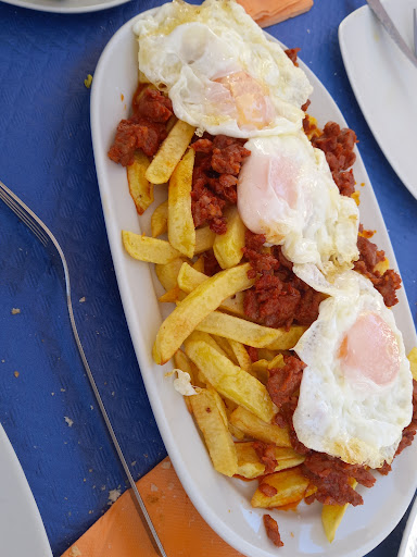 Hemos ido a comer 3 personas, la primera vez y ha superado nuestras expectativas. Vinimos con la intención de comer aquí al ver los restaurantes de la zona y sus reseñas, este nos pareció el mejor. Súper ricos los platos, buenos precios. El huevo con patatas y picadillo de chorizo, el chorizo diría que es el más rico que he probado porque no me suele gustar. Estaba súper suave y la cantidad genial. El revuelto de morcilla con pera (es más grande de lo que parece en la foto), pensaba que no estaría rico pero la pera es poco notable y sabe rico. No le hice foto al ticket, pero nos costó 38'20€, contando las bebidas, postre (té verde y café bombón) y una ensalada (muy buena, con cogollos, anchoas, tomate, aceitunas y bonito) que se me olvidó fotografiarla. El camarero rubio muy majete. Volveríamos y seguramente seríamos clientes habituales, tristemente está lejos de casa. Fuimos por...