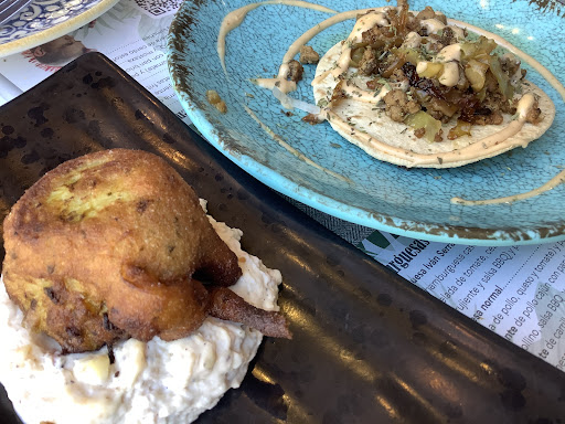 Fatal, ese es el resumen. Fuimos con unos amigos y quedamos fatal con ellos. El servicio amable e incluso se disculparon varias veces e intentaron arreglarlo como pudieron pero no hubo manera. había descontrol, no ponían la comida ni las tapas, faltaban muchos de los productos, tardaban en atender...Mis amigos fueron antes y pidieron, y 45min después llegamos nosotros y aún no le habían tomado nota de la tapa. Pedimos nosotros y media hora después pusieron la tapas, que aunque estaban buenas, estaban frías para ser tapas calientes. En hora punta puede ser normal. Viendo que iba la cosa lenta, pedimos unas tapas extras ( pan bao), un perrito ( que vino metido entre dos brioches con tanta salsa que tenía mala pinta) y unas patatas con pluma ( estaba rica pero muy escasa, venían 5 mini trozos, literalmente, de carne). Volvimos a pedir bebidas más su tapa (lomo) y llegaron los dos platos y nos dijeron que le pan bao que no estaba en buen estado y que no nos los ponían (cosa que vi bien) pero nos avisaron 40 min después de pedirlo. Nos comimos los platos sin bebida porque no venían. Intentamos pedir de otras cosas y no había o si era hamburguesas o perritos no tenían ni pan. El muchacho para intentar solucionar el desastre nos dijo que nos regalaba unas tostas de queso de cabra. Nos habíamos vuelto beber la bebida y nos llegó el queso. El lomo nunca llegó...pedimos la cuenta y le dijimos lo del lomo nos dijo de volver a pedirlo, pero solo nos apetecía irnos de allí. El chico intentó invitarnos a una copa, y se disculpó mil veces la verdad. De las 4 familias que íbamos no creo que volvamos. Una pena aunque no creo que...